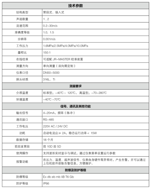 JR-A氣體超聲流量計是專為臟污氣體流量,特別是煤氣的貿易結算計量而設計的,其電路系統選用高速DSP系統,超聲波換能器采用單、雙聲道模式,可配校準聲道,實現大小口徑的在線校準,確保流量計工作的可靠性、穩定性及準確性,實現基本免維護,適合低流速條件高精度貿易結算測量,適合低頻脈動流流量測量。